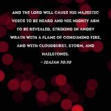 And the LORD will cause His majestic voice to be heard and His mighty arm to be revealed, striking in angry wrath with a flame of consuming fire, and with cloudburst, storm, and hailstones.