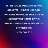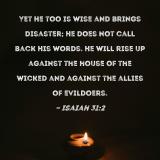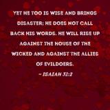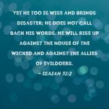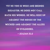 Yet He too is wise and brings disaster; He does not call back His words. He will rise up against the house of the wicked and against the allies of evildoers.