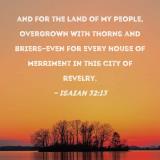 and for the land of my people, overgrown with thorns and briers--even for every house of merriment in this city of revelry.