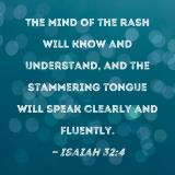 The mind of the rash will know and understand, and the stammering tongue will speak clearly and fluently.
