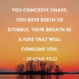 You conceive chaff; you give birth to stubble. Your breath is a fire that will consume you.