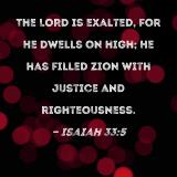 The LORD is exalted, for He dwells on high; He has filled Zion with justice and righteousness.