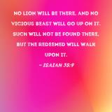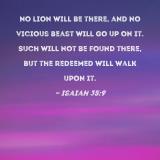 No lion will be there, and no vicious beast will go up on it. Such will not be found there, but the redeemed will walk upon it.