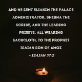 And he sent Eliakim the palace administrator, Shebna the scribe, and the leading priests, all wearing sackcloth, to the prophet Isaiah son of Amoz