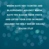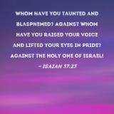 Whom have you taunted and blasphemed? Against whom have you raised your voice and lifted your eyes in pride? Against the Holy One of Israel!