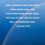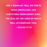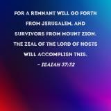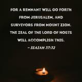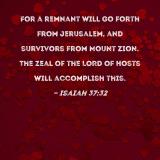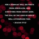 For a remnant will go forth from Jerusalem, and survivors from Mount Zion. The zeal of the LORD of Hosts will accomplish this.