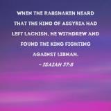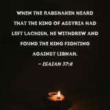 When the Rabshakeh heard that the king of Assyria had left Lachish, he withdrew and found the king fighting against Libnah.
