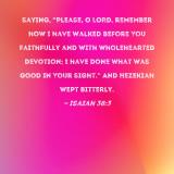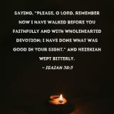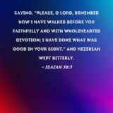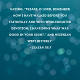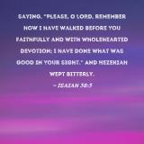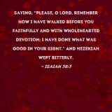 saying, "Please, O LORD, remember how I have walked before You faithfully and with wholehearted devotion; I have done what was good in Your sight." And Hezekiah wept bitterly.