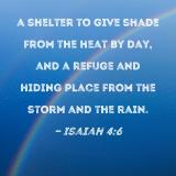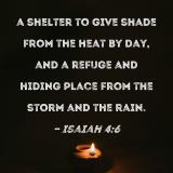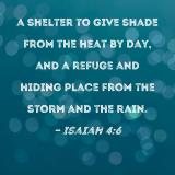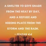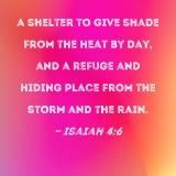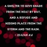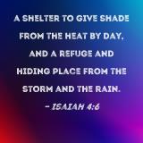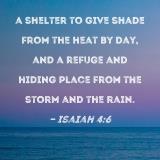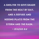 a shelter to give shade from the heat by day, and a refuge and hiding place from the storm and the rain.