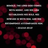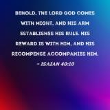 Behold, the Lord GOD comes with might, and His arm establishes His rule. His reward is with Him, and His recompense accompanies Him.