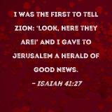 I was the first to tell Zion: 'Look, here they are!' And I gave to Jerusalem a herald of good news.