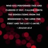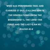 Who has performed this and carried it out, calling forth the generations from the beginning? I, the LORD--the first and the last--I am He."