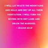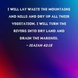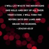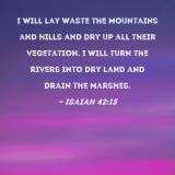 I will lay waste the mountains and hills and dry up all their vegetation. I will turn the rivers into dry land and drain the marshes.