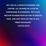 But this is a people plundered and looted, all trapped in caves or imprisoned in dungeons. They have become plunder with no one to rescue them, and loot with no one to say, "Send them back!"