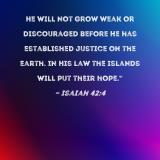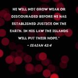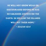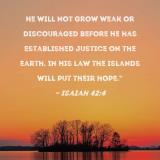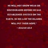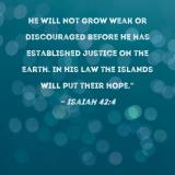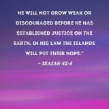 He will not grow weak or discouraged before He has established justice on the earth. In His law the islands will put their hope."