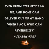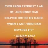 Even from eternity I am He, and none can deliver out of My hand. When I act, who can reverse it?"