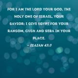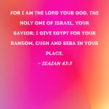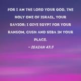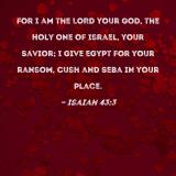 For I am the LORD your God, the Holy One of Israel, your Savior; I give Egypt for your ransom, Cush and Seba in your place.