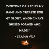 everyone called by My name and created for My glory, whom I have indeed formed and made."
