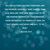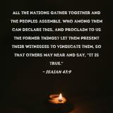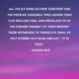 All the nations gather together and the peoples assemble. Who among them can declare this, and proclaim to us the former things? Let them present their witnesses to vindicate them, so that others may hear and say, "It is true."