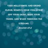 Take millstones and grind flour; remove your veil; strip off your skirt, bare your thigh, and wade through the streams.