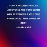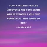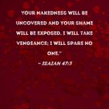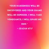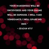 Your nakedness will be uncovered and your shame will be exposed. I will take vengeance; I will spare no one."