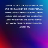 "Listen to this, O house of Jacob, you who are called by the name of Israel, who have descended from the line of Judah, who swear by the name of the LORD, who invoke the God of Israel--but not in truth or righteousness--