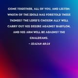 Come together, all of you, and listen: Which of the idols has foretold these things? The LORD's chosen ally will carry out His desire against Babylon, and His arm will be against the Chaldeans.