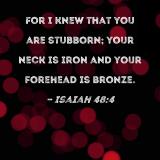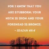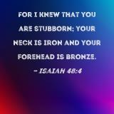 For I knew that you are stubborn; your neck is iron and your forehead is bronze.