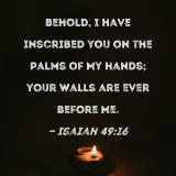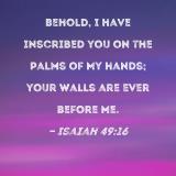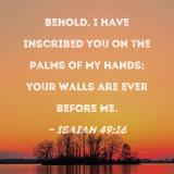 Behold, I have inscribed you on the palms of My hands; your walls are ever before Me.