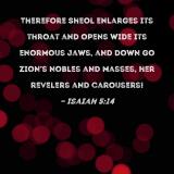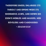 Therefore Sheol enlarges its throat and opens wide its enormous jaws, and down go Zion's nobles and masses, her revelers and carousers!