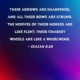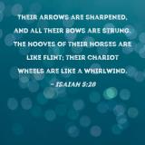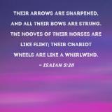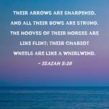 Their arrows are sharpened, and all their bows are strung. The hooves of their horses are like flint; their chariot wheels are like a whirlwind.