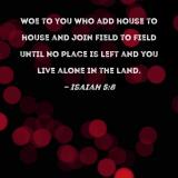 Woe to you who add house to house and join field to field until no place is left and you live alone in the land.