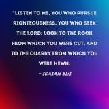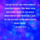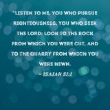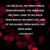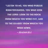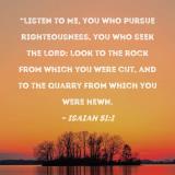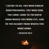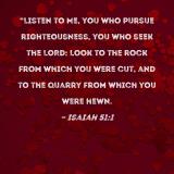 "Listen to Me, you who pursue righteousness, you who seek the LORD: Look to the rock from which you were cut, and to the quarry from which you were hewn.