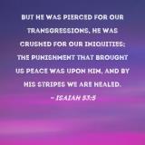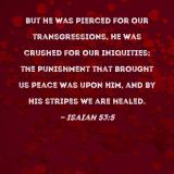 But He was pierced for our transgressions, He was crushed for our iniquities; the punishment that brought us peace was upon Him, and by His stripes we are healed.