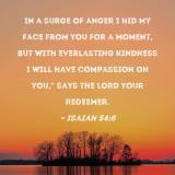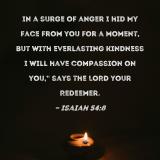 In a surge of anger I hid My face from you for a moment, but with everlasting kindness I will have compassion on you," says the LORD your Redeemer.