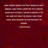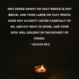Why spend money on that which is not bread, and your labor on that which does not satisfy? Listen carefully to Me, and eat what is good, and your soul will delight in the richest of foods.