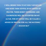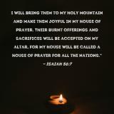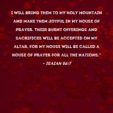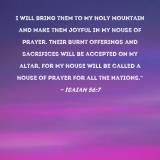 I will bring them to My holy mountain and make them joyful in My house of prayer. Their burnt offerings and sacrifices will be accepted on My altar, for My house will be called a house of prayer for all the nations."