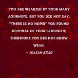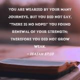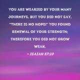 You are wearied by your many journeys, but you did not say, "There is no hope!" You found renewal of your strength; therefore you did not grow weak.