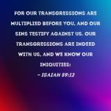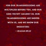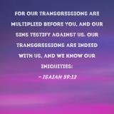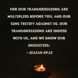 For our transgressions are multiplied before You, and our sins testify against us. Our transgressions are indeed with us, and we know our iniquities: