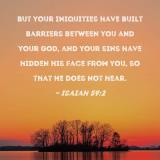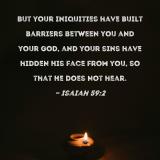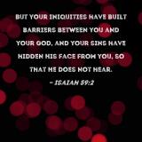 But your iniquities have built barriers between you and your God, and your sins have hidden His face from you, so that He does not hear.