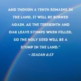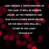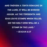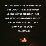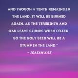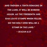 And though a tenth remains in the land, it will be burned again. As the terebinth and oak leave stumps when felled, so the holy seed will be a stump in the land."