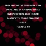 Then one of the seraphim flew to me, and in his hand was a glowing coal that he had taken with tongs from the altar.