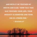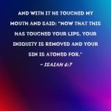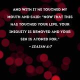 And with it he touched my mouth and said: "Now that this has touched your lips, your iniquity is removed and your sin is atoned for."