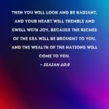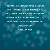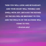 Then you will look and be radiant, and your heart will tremble and swell with joy, because the riches of the sea will be brought to you, and the wealth of the nations will come to you.