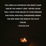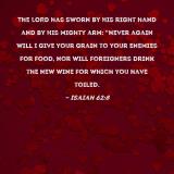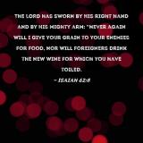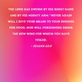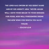 The LORD has sworn by His right hand and by His mighty arm: "Never again will I give your grain to your enemies for food, nor will foreigners drink the new wine for which you have toiled.