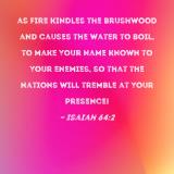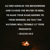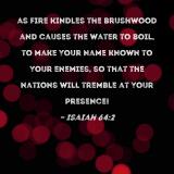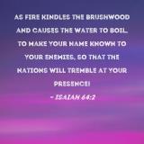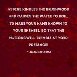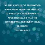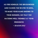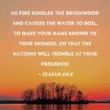 as fire kindles the brushwood and causes the water to boil, to make Your name known to Your enemies, so that the nations will tremble at Your presence!
