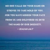 No one calls on Your name or strives to take hold of You. For You have hidden Your face from us and delivered us into the hand of our iniquity.