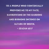 to a people who continually provoke Me to My face, sacrificing in the gardens and burning incense on altars of brick,