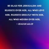 Be glad for Jerusalem and rejoice over her, all who love her. Rejoice greatly with her, all who mourn over her,