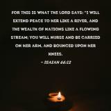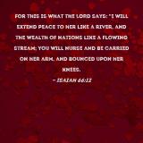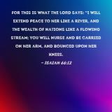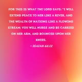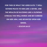 For this is what the LORD says: "I will extend peace to her like a river, and the wealth of nations like a flowing stream; you will nurse and be carried on her arm, and bounced upon her knees.